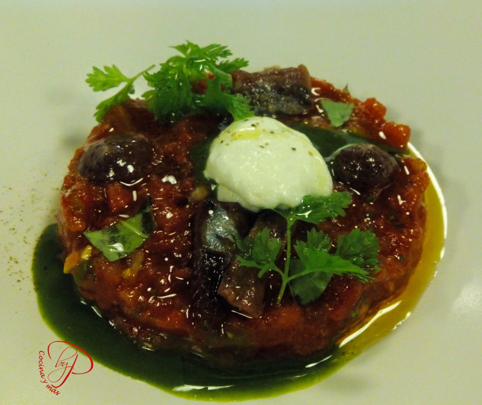 Esta maravilla de "Tartar de tomate con ahumados y toque de especias" fue una auténtica delicia. Cuando el producto y la ejecución es buena sólo cabe el deleite.